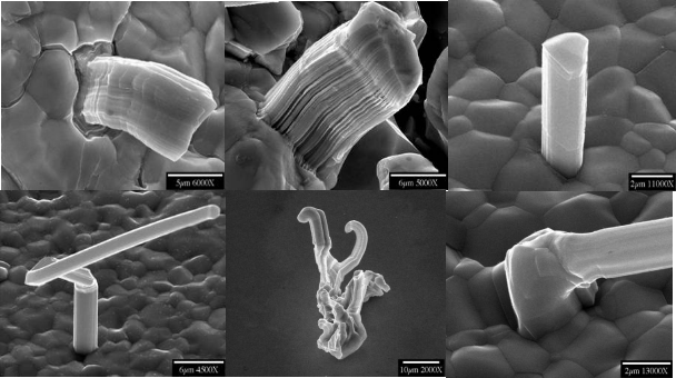 在引入錫須概念之前,我們先了解晶須的一些基礎(chǔ)知識(shí)。晶須是一種頭發(fā)狀的晶體,它能從固體表面自然的生長(zhǎng)出來(lái),也稱為“固有晶須”。晶須可以錫、鎘、鋅,銦等純金屬上出現(xiàn),在鉛、鎳、金,銀上鮮有見到。錫須是晶須的一種,是在錫表面自然生長(zhǎng)的晶須。錫須生長(zhǎng)過程中,客觀因素的影響或是錫晶粒排列取向改變使錫須生長(zhǎng)方向發(fā)生改變,形成不同生長(zhǎng)形態(tài)的錫須,形狀一般是柱狀、扭結(jié)、丘起、環(huán)狀等。
